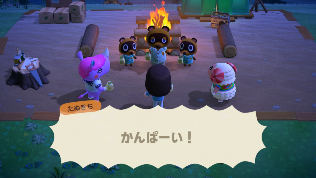 たぬきちたちと焚火の前で、かんぱいした日の写真が出てきました🔥🍹
